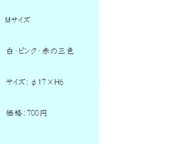 カラー:白・オレンジ・黄色・水色・紫・赤・ピンク