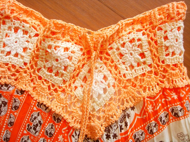 ウエスト部分は、クロシェで紐結び。
