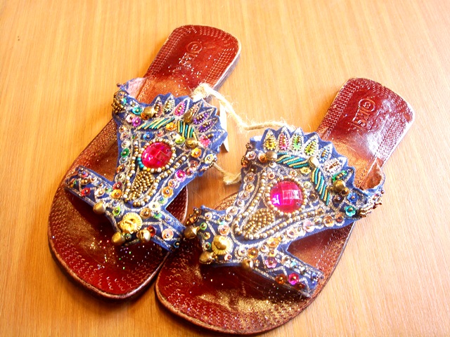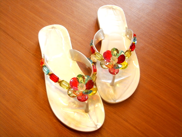 フラワービーズサンダル:1800円 革ビーズサンダル:1800円
