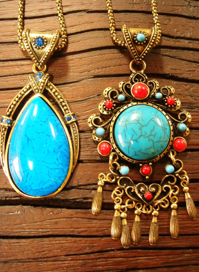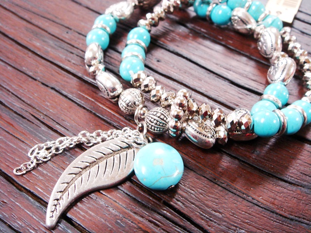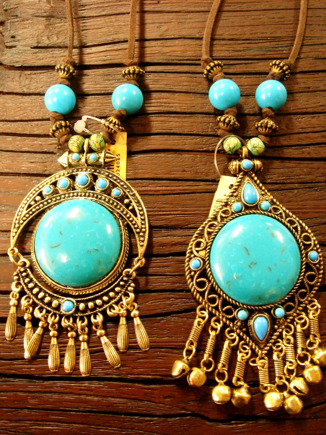 エスニックな雰囲気たっぷりの、ターコイズカラーのネックレスです。
