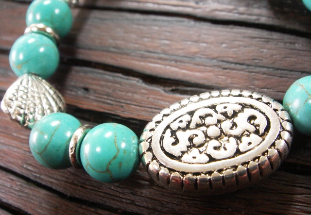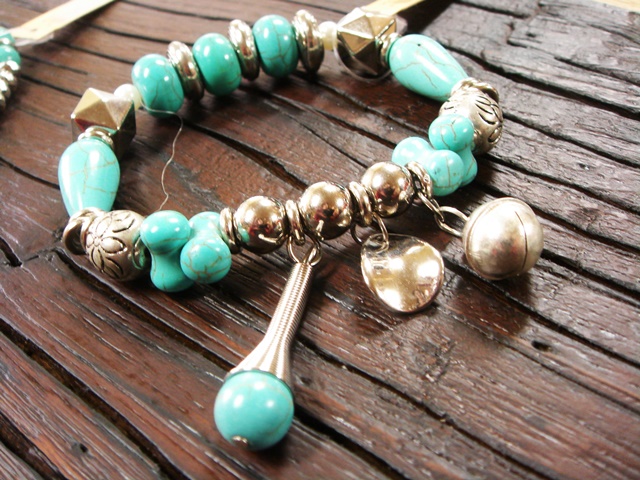 同じターコイズカラーのボリューミーなブレスレット。
