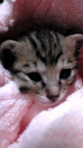 ケージの中で、お母さんを求めて鳴きまくっていたミャー。