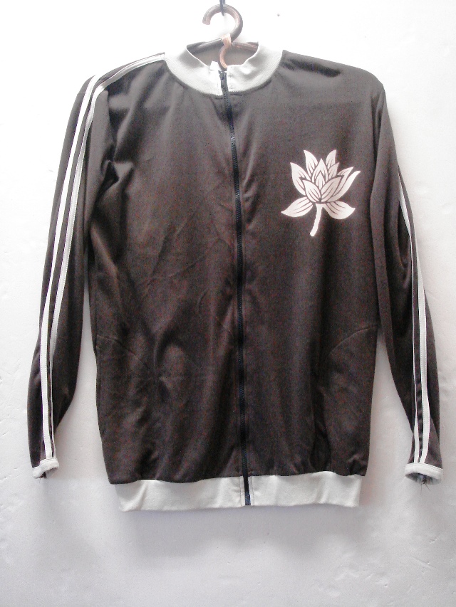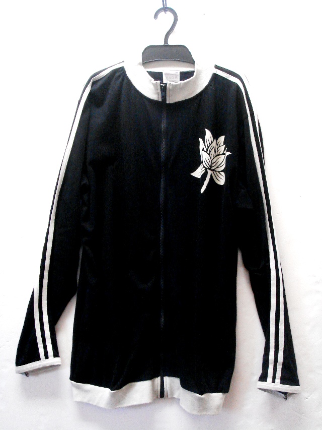 袖にラインの入ったジャージ。