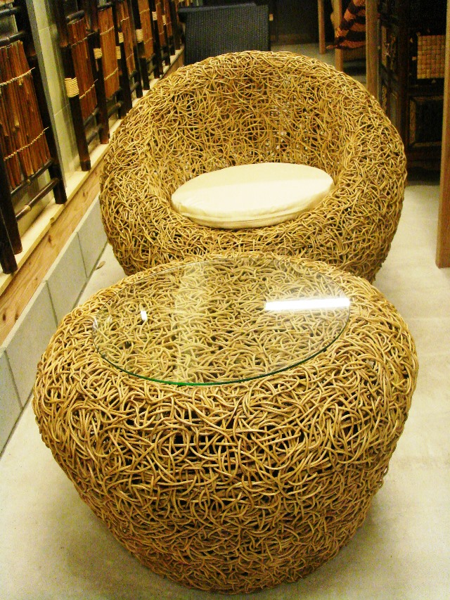 今までの籐の家具とは一味違うイメージのモダンなソファ。
