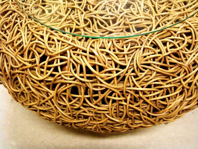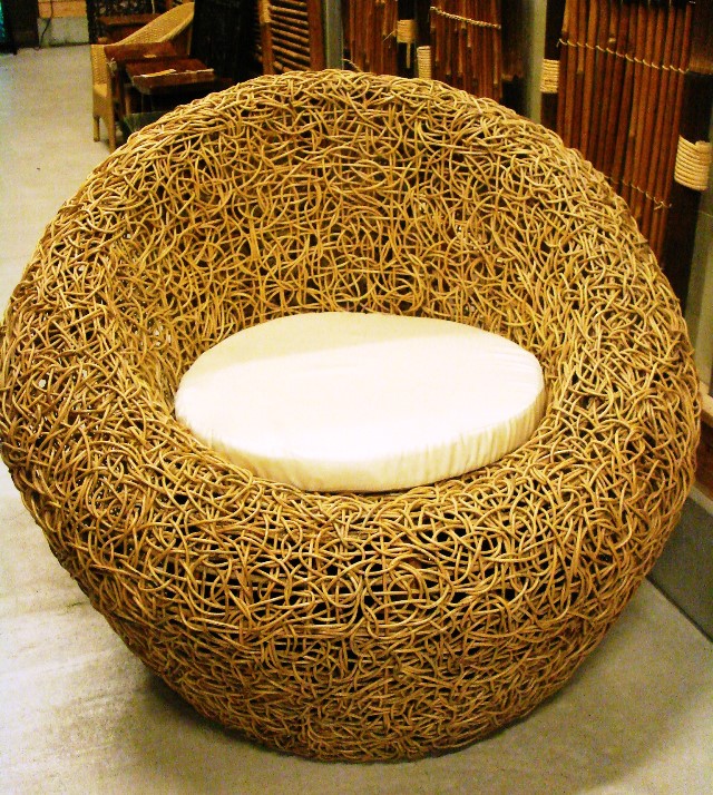 籐をしっかりと編みこんで作られた、一人掛けのソファです。