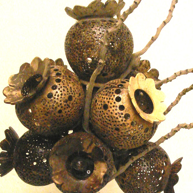実をくりぬいて殻に開けた穴に電球をつけてあります。