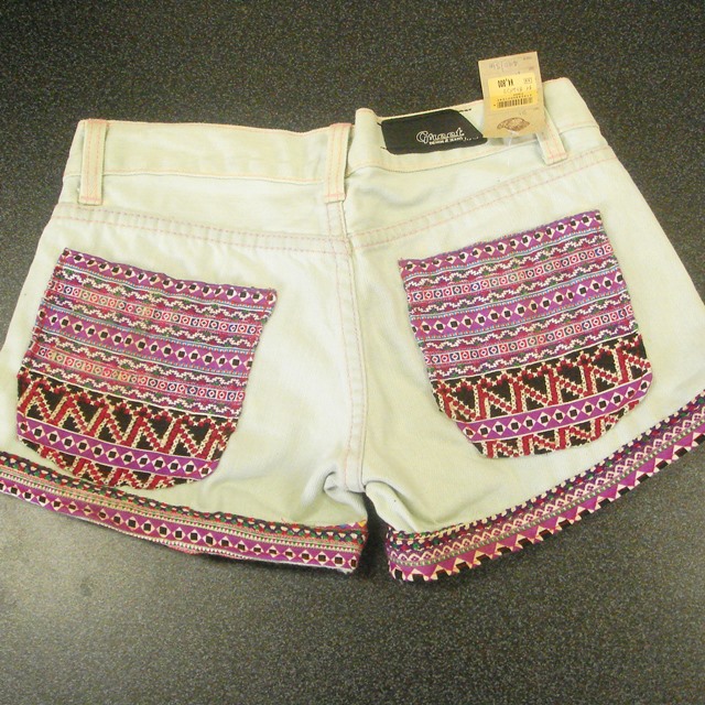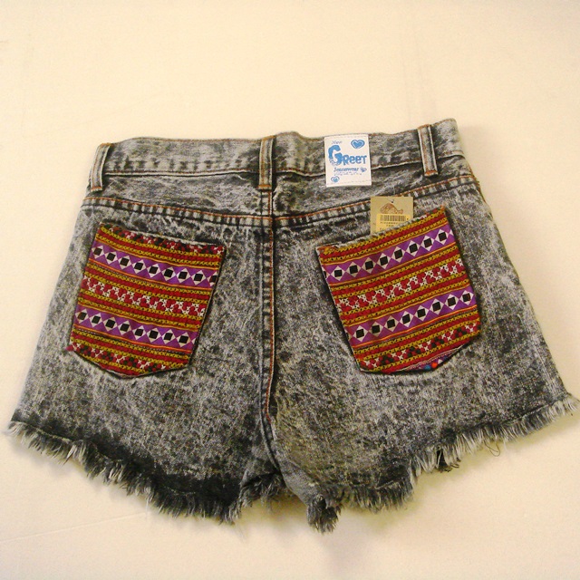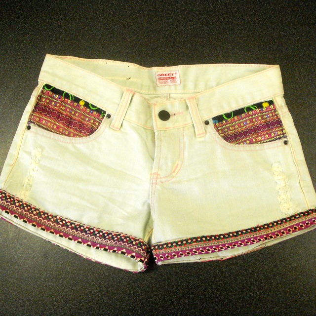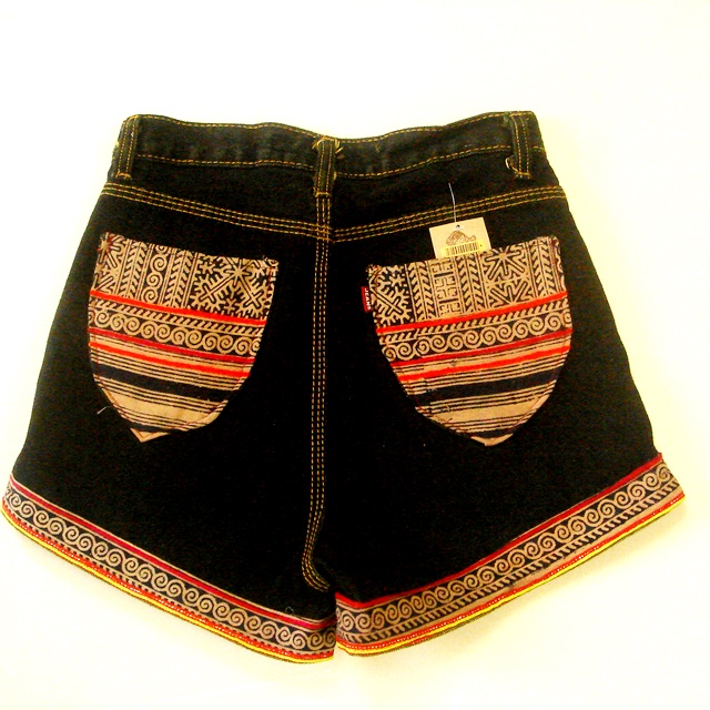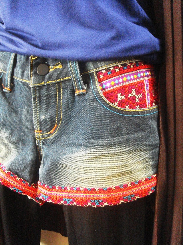 ジーンズ生地と好相性のモン族の刺繍布を使ったショートパンツです。