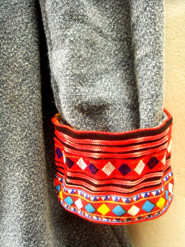 こちらは、袖口と肩にもモン族布が使ってあります。着丈が少し長め。