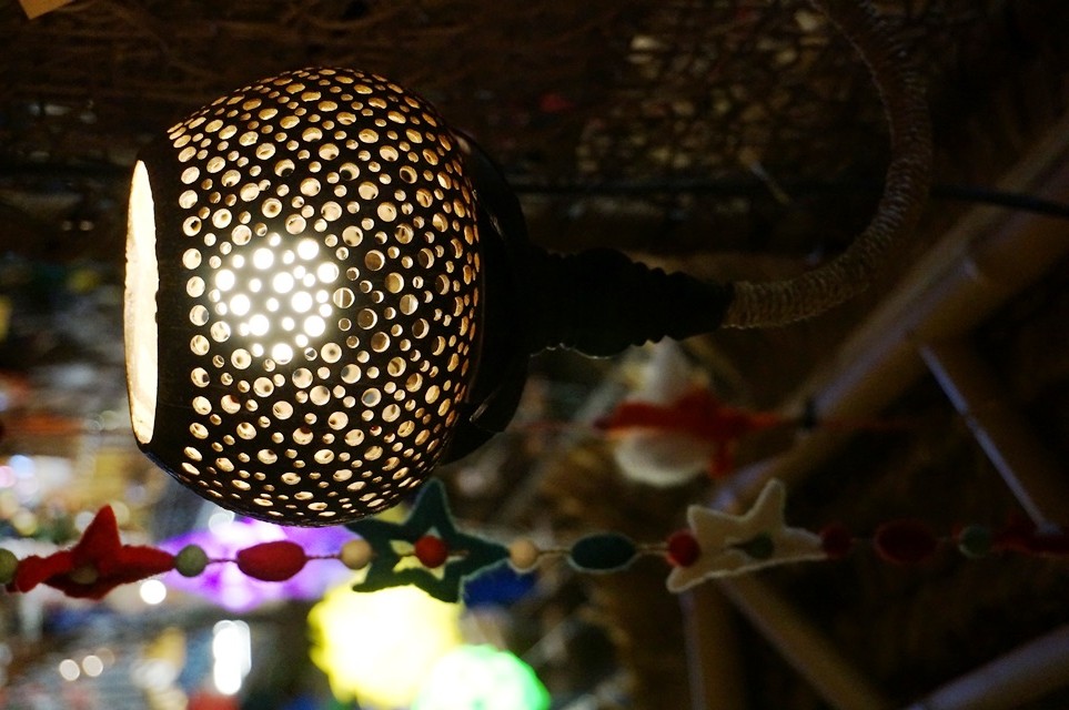 ココナッツの殻を使ったランプは、スタンドタイプなど