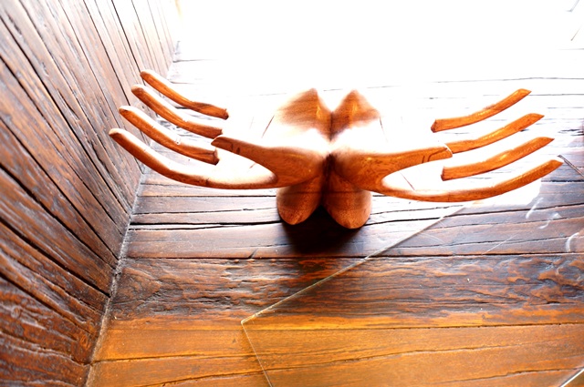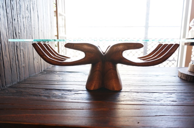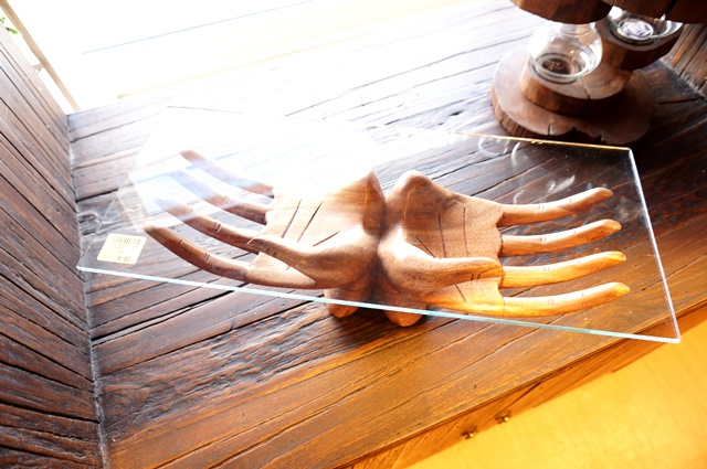 バリ島の木彫りのブッダハンドに、ガラスがついたお洒落なインテリア小物。