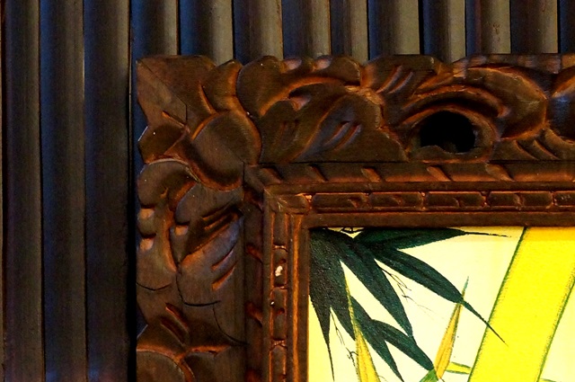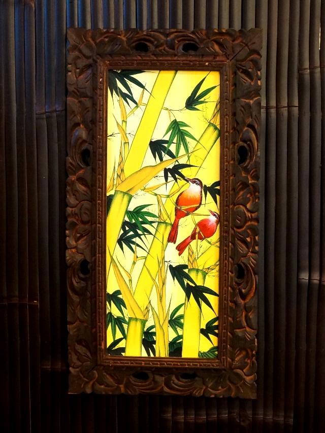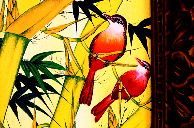 まずは、黄色の竹と雀のような鳥の絵から。