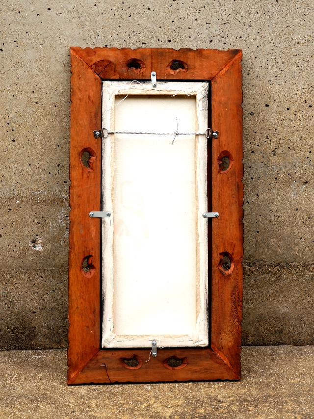 木彫りの額付き(ガラスなし)、後ろに、飾るためのひも付き