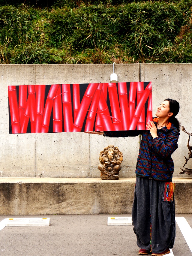 赤い竹はインパクト大です。