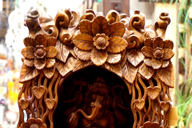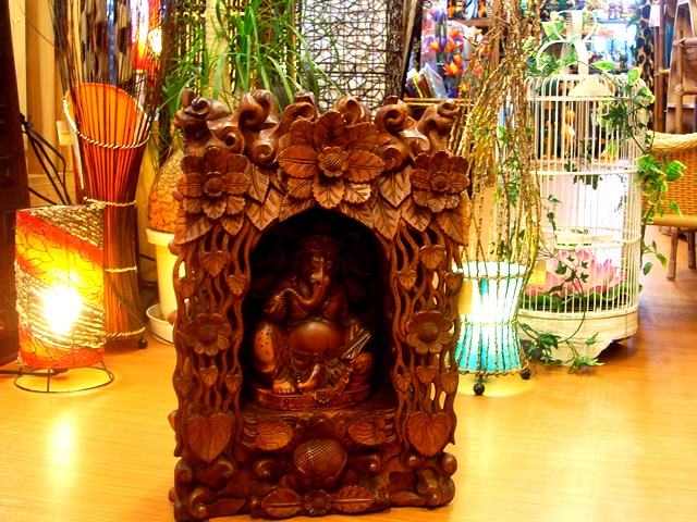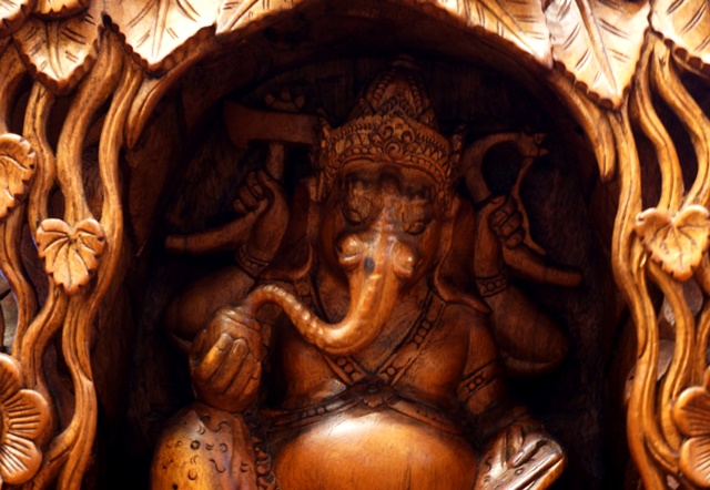 一刀彫の立体フレームの中に、別彫りのガネーシャ様が