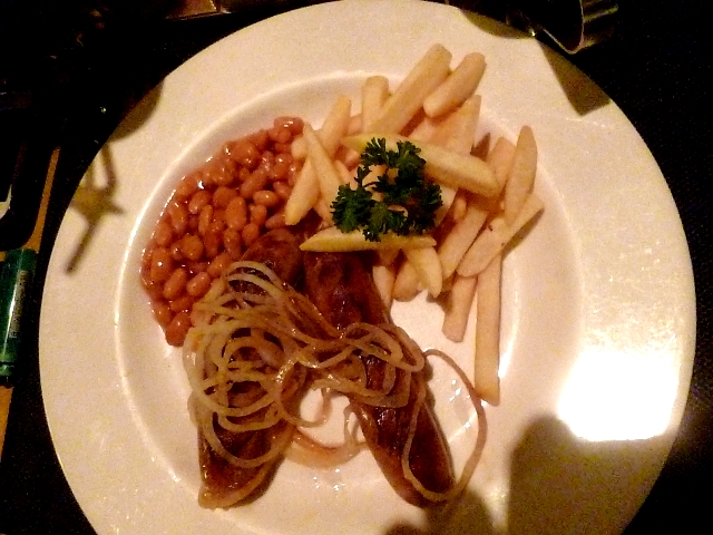 ソーセージとビーンズの煮込みプレート。