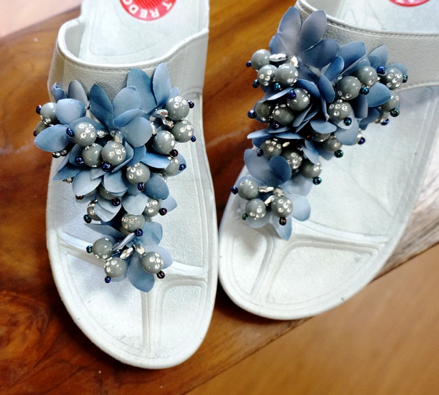 ビーチサンダル 大人可愛いビーズフラワーのサンダル