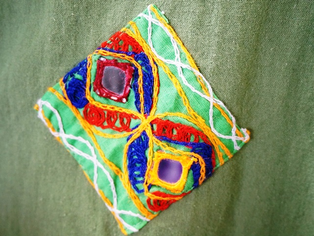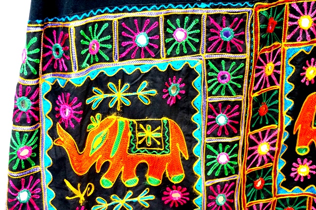 柄は、プリントではなくて、パッチワークやビーズ刺繍・スパンコールなどです。