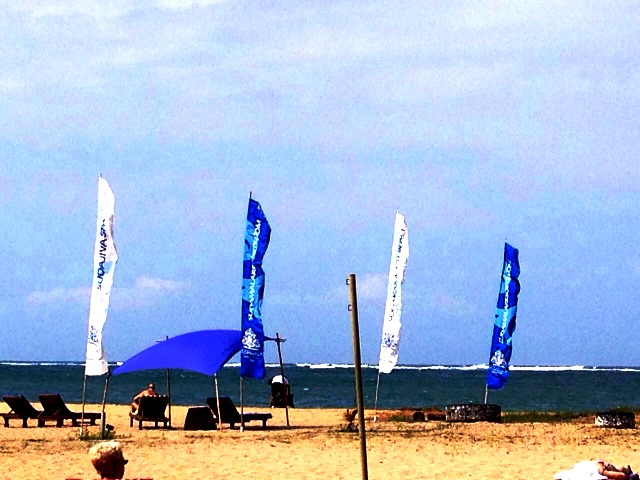 サヌールビーチ沿いのショップを物色中。