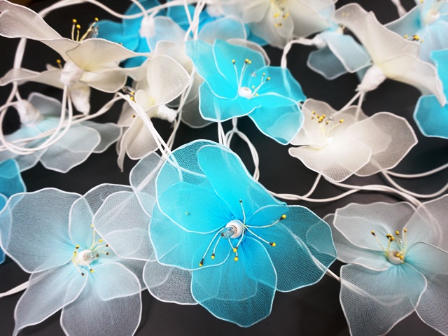 ワイヤーで花びらの輪郭を作り、オーガンジーの布をかぶせてあります。