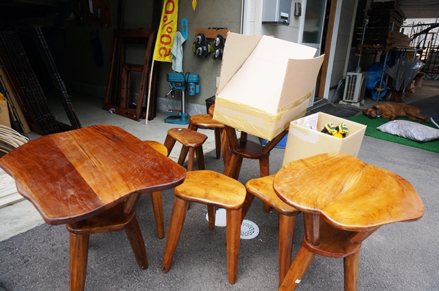 希少なチーク材を使った、花台やコーヒーテーブルなど。