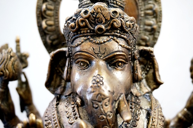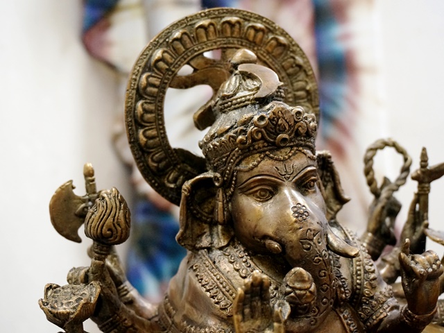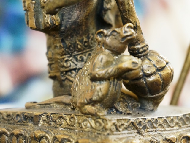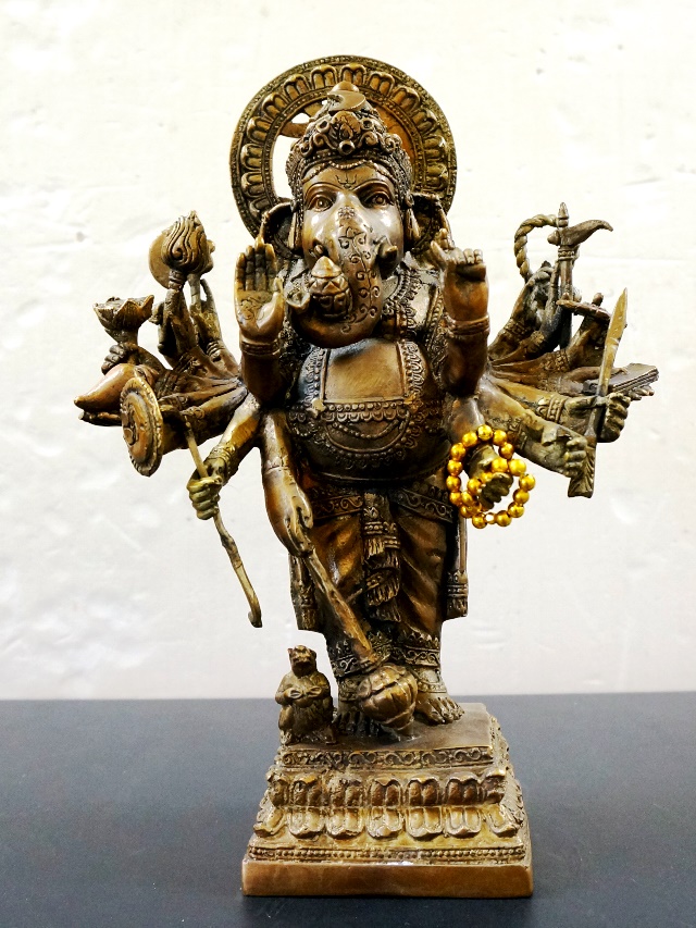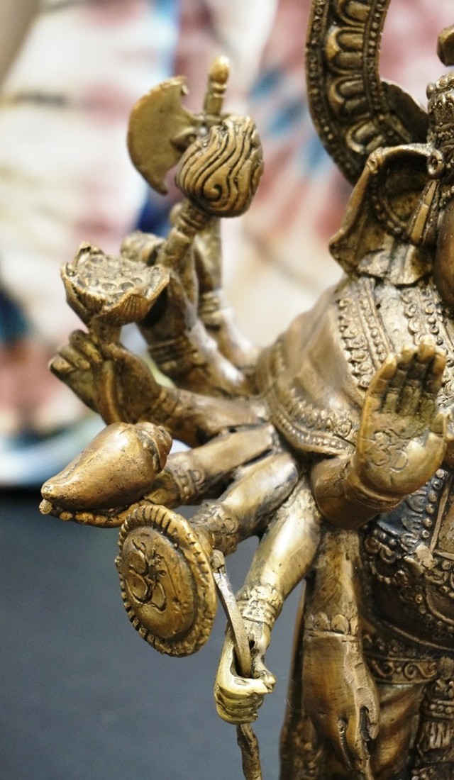 手に持っているのは、斧・蓮の花・ほら貝・円盤・弓突き棒