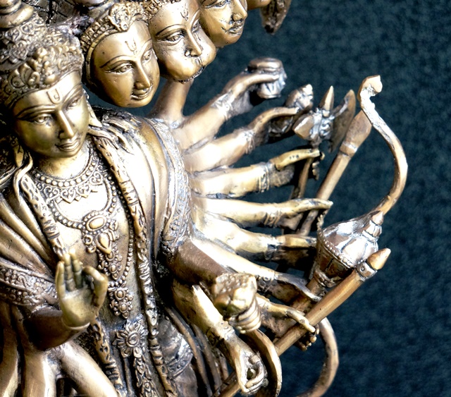 20本の手には、それぞれ、剣・金の数珠・蓮の花・輪縄・鉾・三叉戟・突き棒・