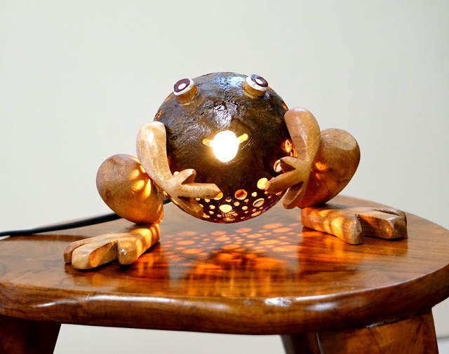 このココナッツのランプのシリーズは、どれもココナッツの殻に穴をあけ、