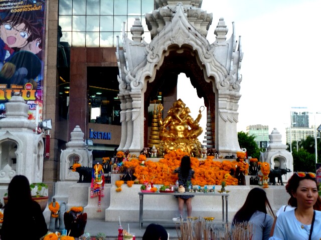 イセタン前の金色のガネーシャ。