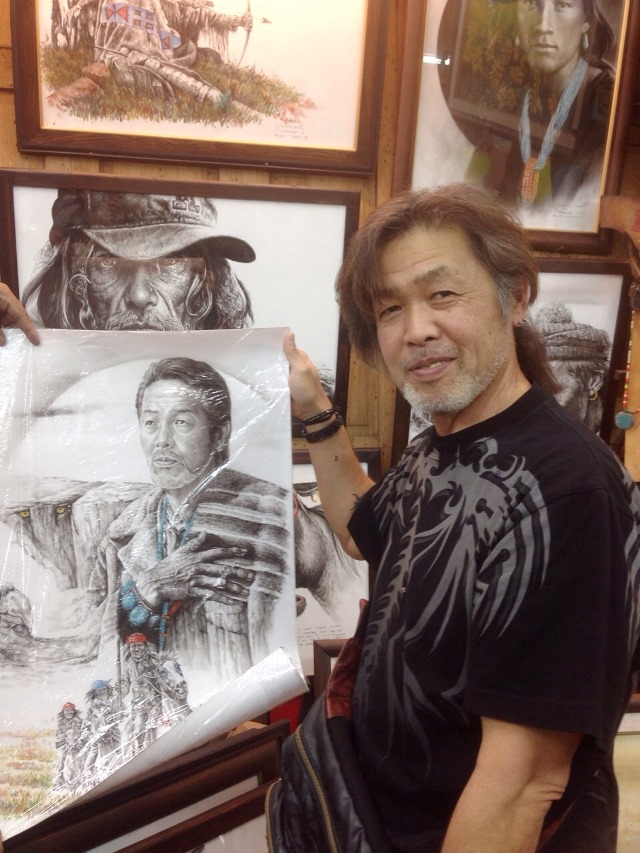 店長が持っている絵のモデルは、店長です。