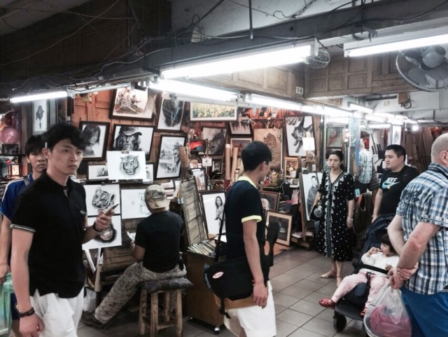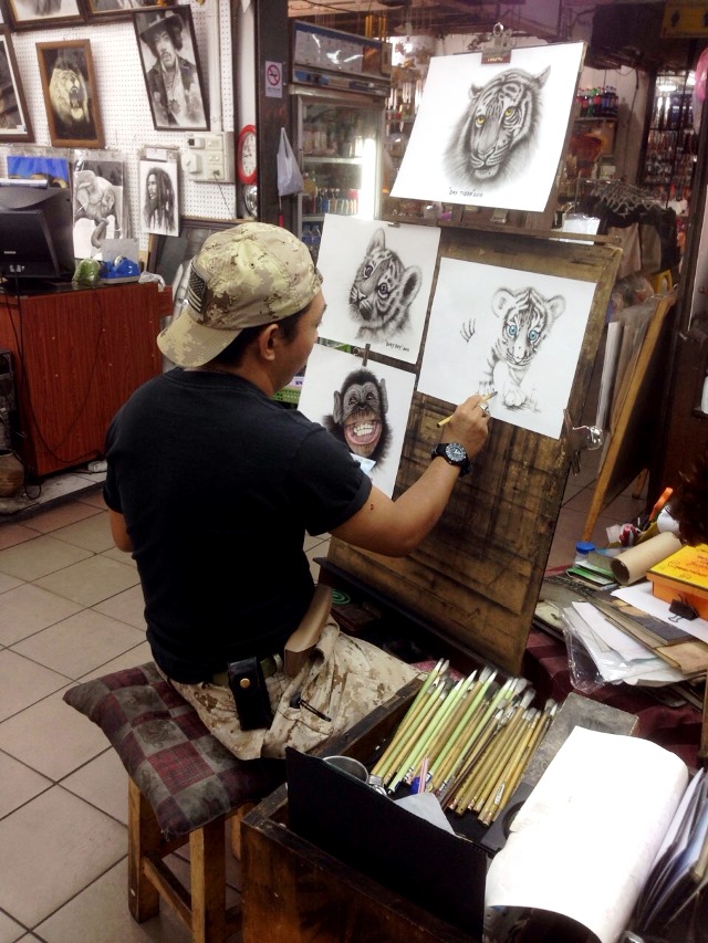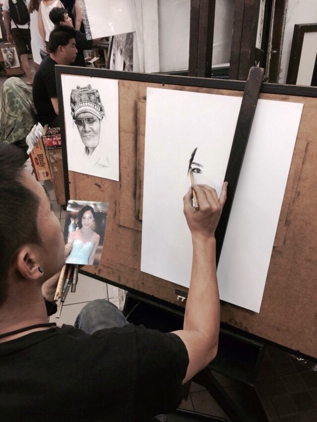 鉛筆画で似顔絵を描いてくれるお店。