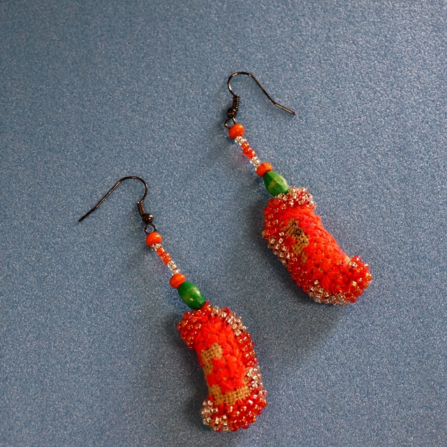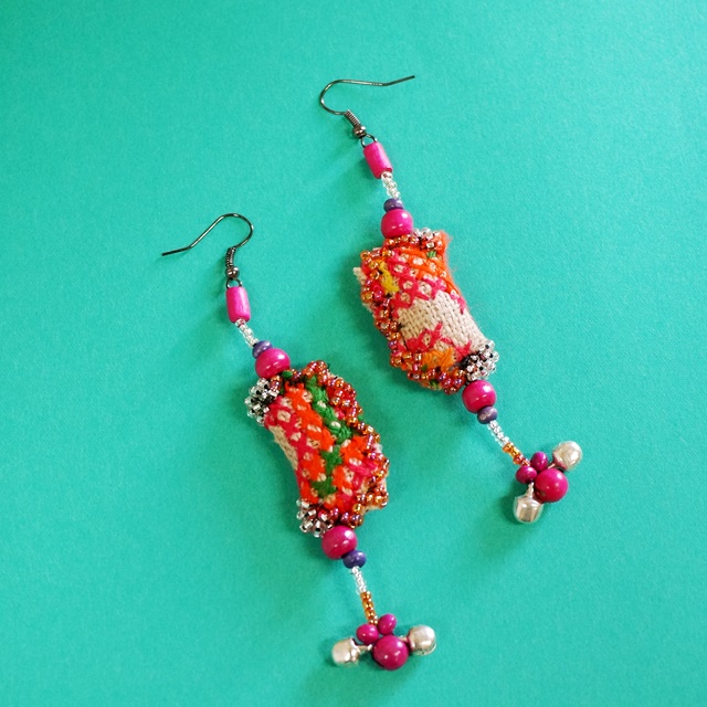 刺繍やキラキラビーズで可愛くキュートに仕上げた、ハンドメイドのピアス。