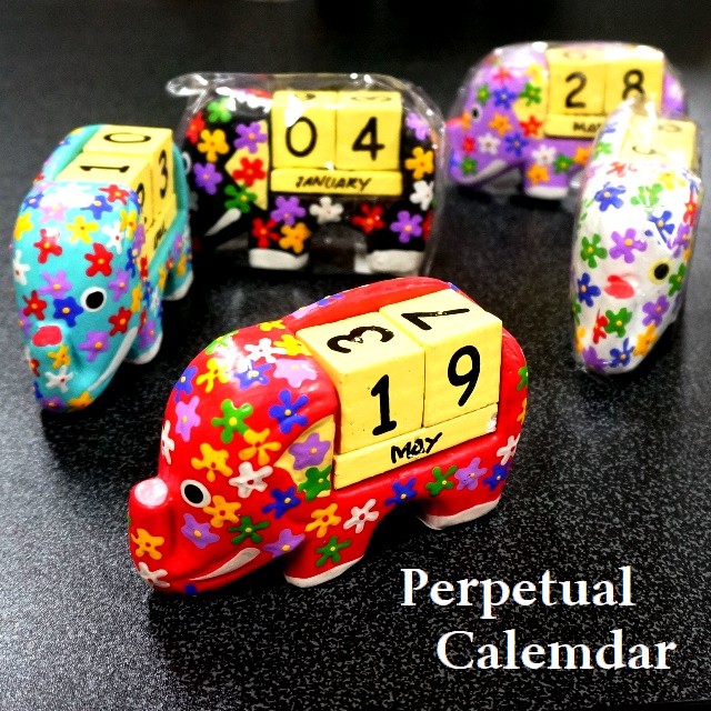 バリ島の木彫りのゾウの万年カレンダーです。