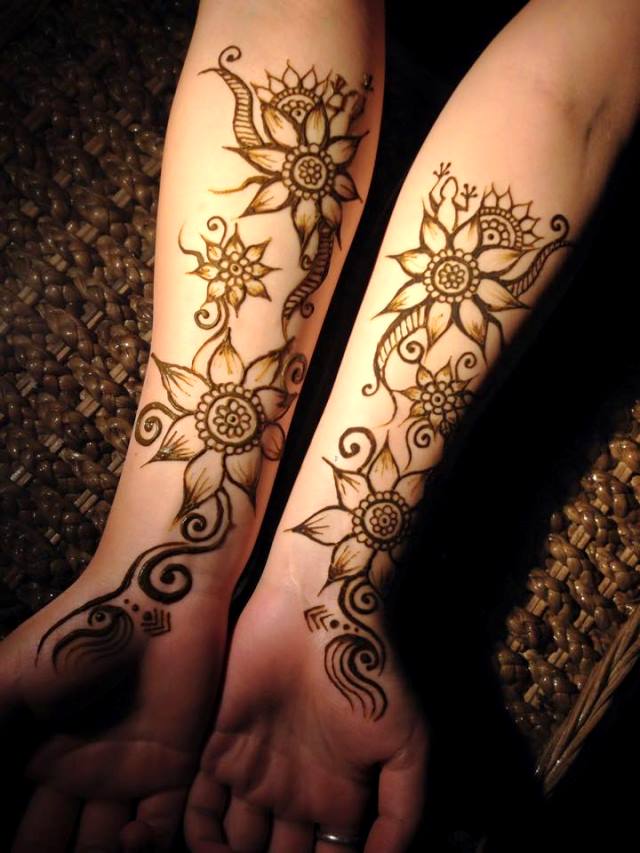 インドのハーブのヘナを使って肌に模様を描くボディーアートです。
