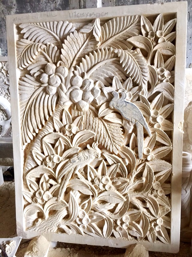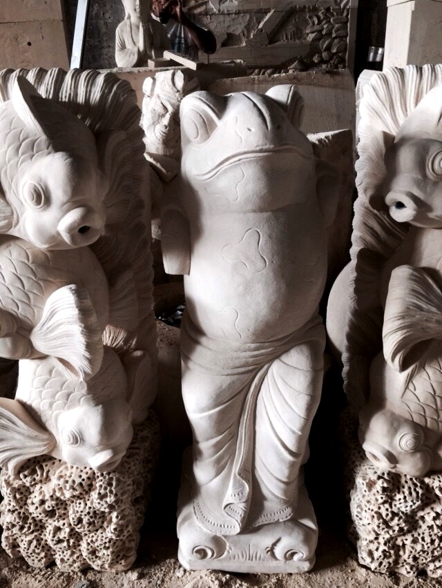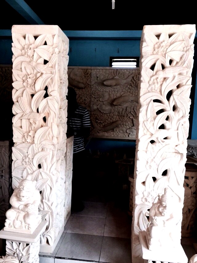 ライムストーンのレリーフや石像。