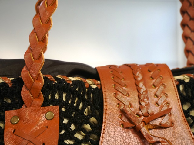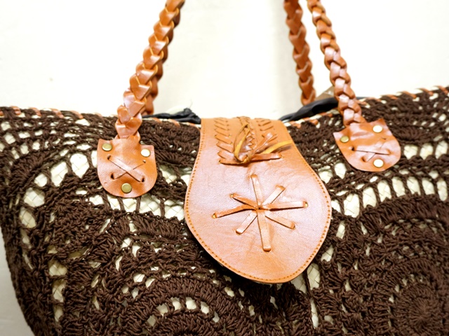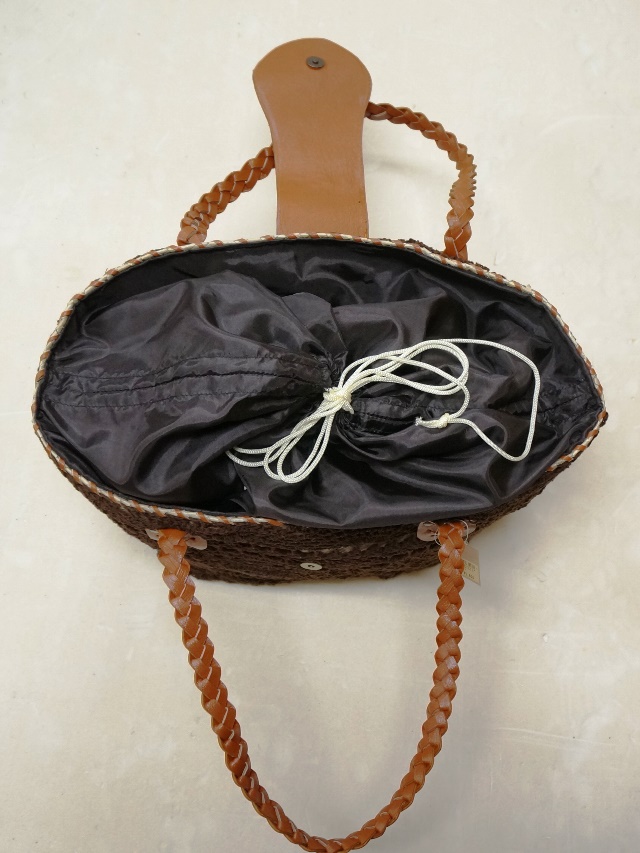 マグネット式の開閉口と、二つ編みの持ち手は本革です。
