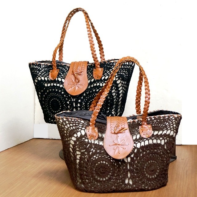 カゴバッグ クロッシェレース/かぎ針編み カゴバッグ