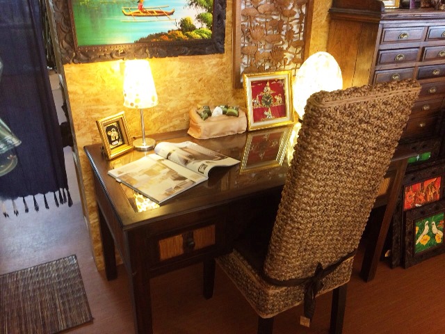 ウォーターヒヤシンスのチェアを組み合わせて、アジアンリゾートな雰囲気に。