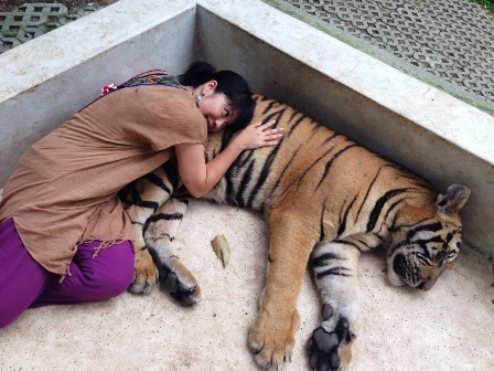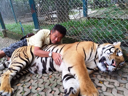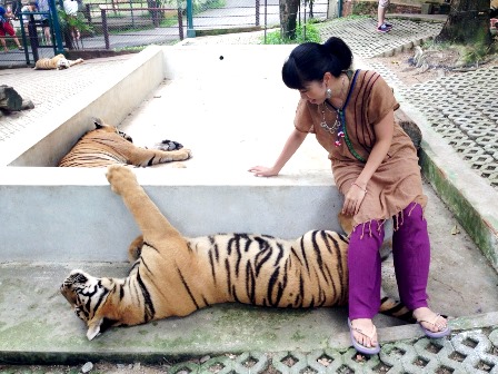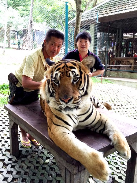 本物の虎と触れ合えます。