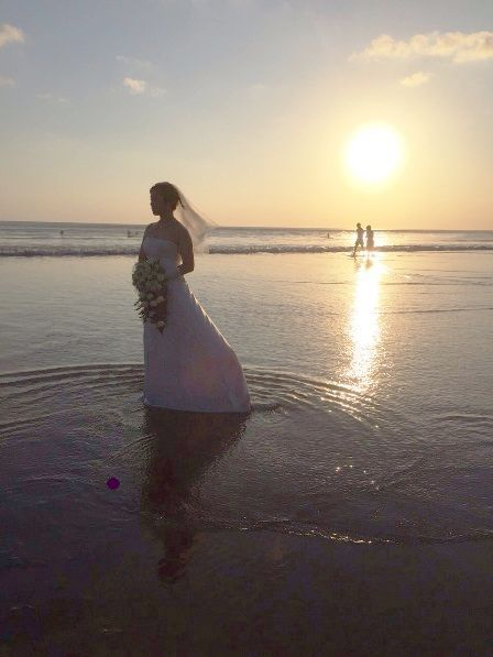 そしてバリ島の夕陽をバックに海で撮影会♪