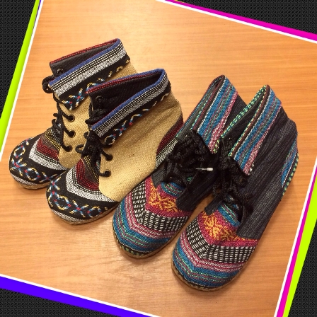 ネパールの代表的な織物のゲリコットンを使ったショートブーツ。
