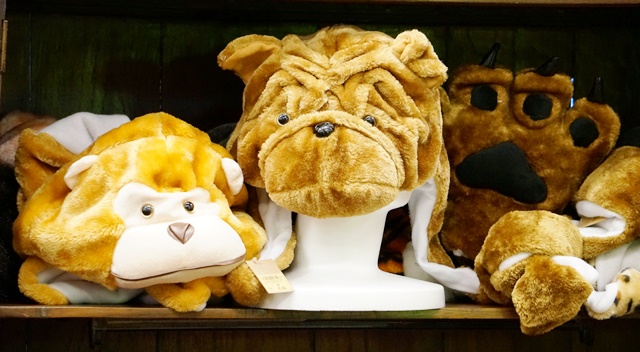 アニマルヘッドのふわふわキャップつきのマフラー。 肉球付きのも!