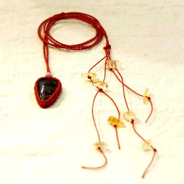 気に入った天然石と、気に入った色のワックスコード(蠟引きのひも)を