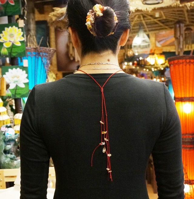 クリスタルやシトリンなどのさざれ石をいくつも付けます。