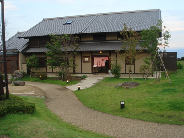 公園のような美しい敷地内に、独立した建物のレストランやそば屋・カフェなどが建てられています。