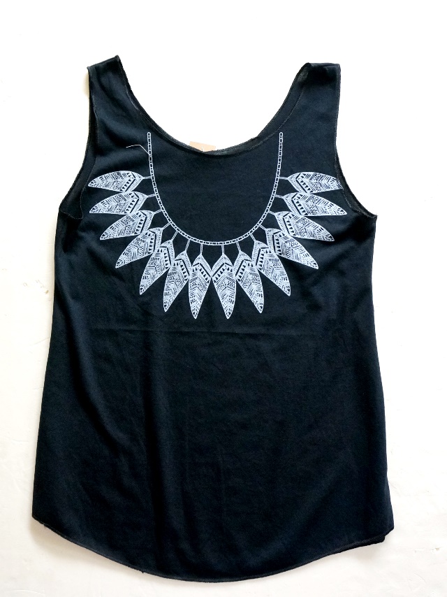 エスニックなイラストのタンクトップ。