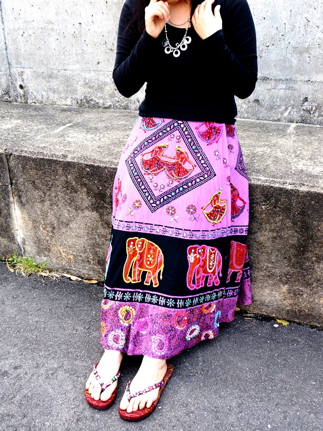 ビーズ・スパンコールかざりつき巻きスカート/エスニックファッション