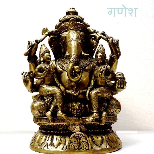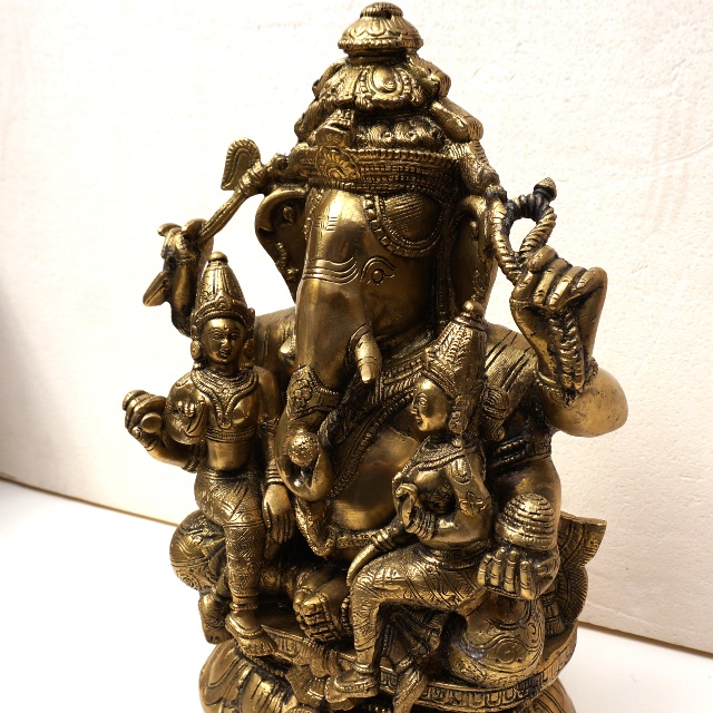 ガネーシャ&シヴァ&パールバティ 真鍮像
