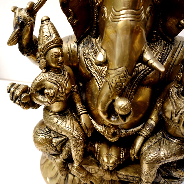 ガネーシャ&シヴァ&パールバティ/ヒンドゥー教仏像 真鍮製