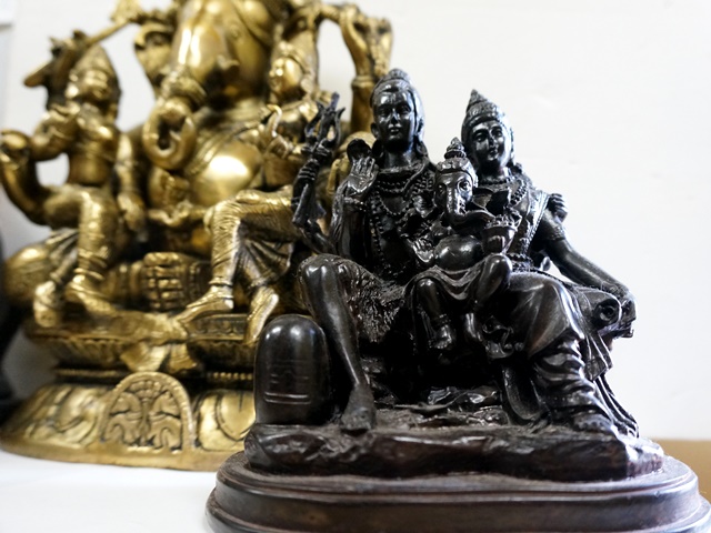 ガネーシャ&シヴァ(左)&パールバティ、3人家族の真鍮像です。