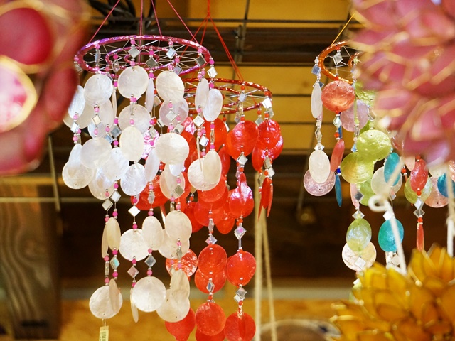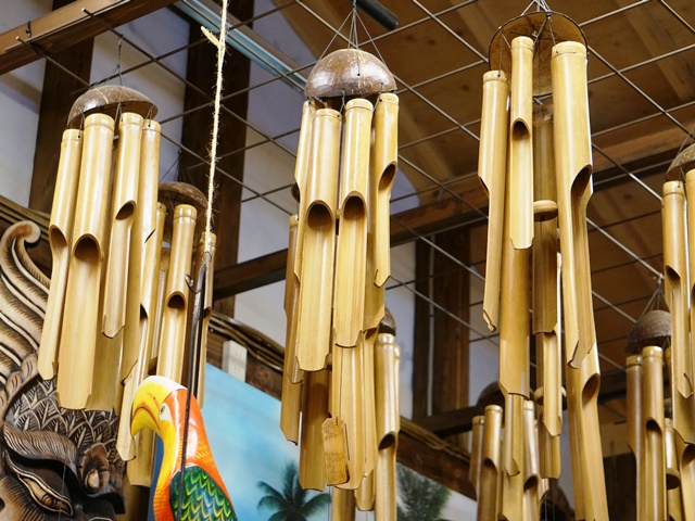 バンブー(竹)や、シェル(貝)など、自然素材の風鈴。